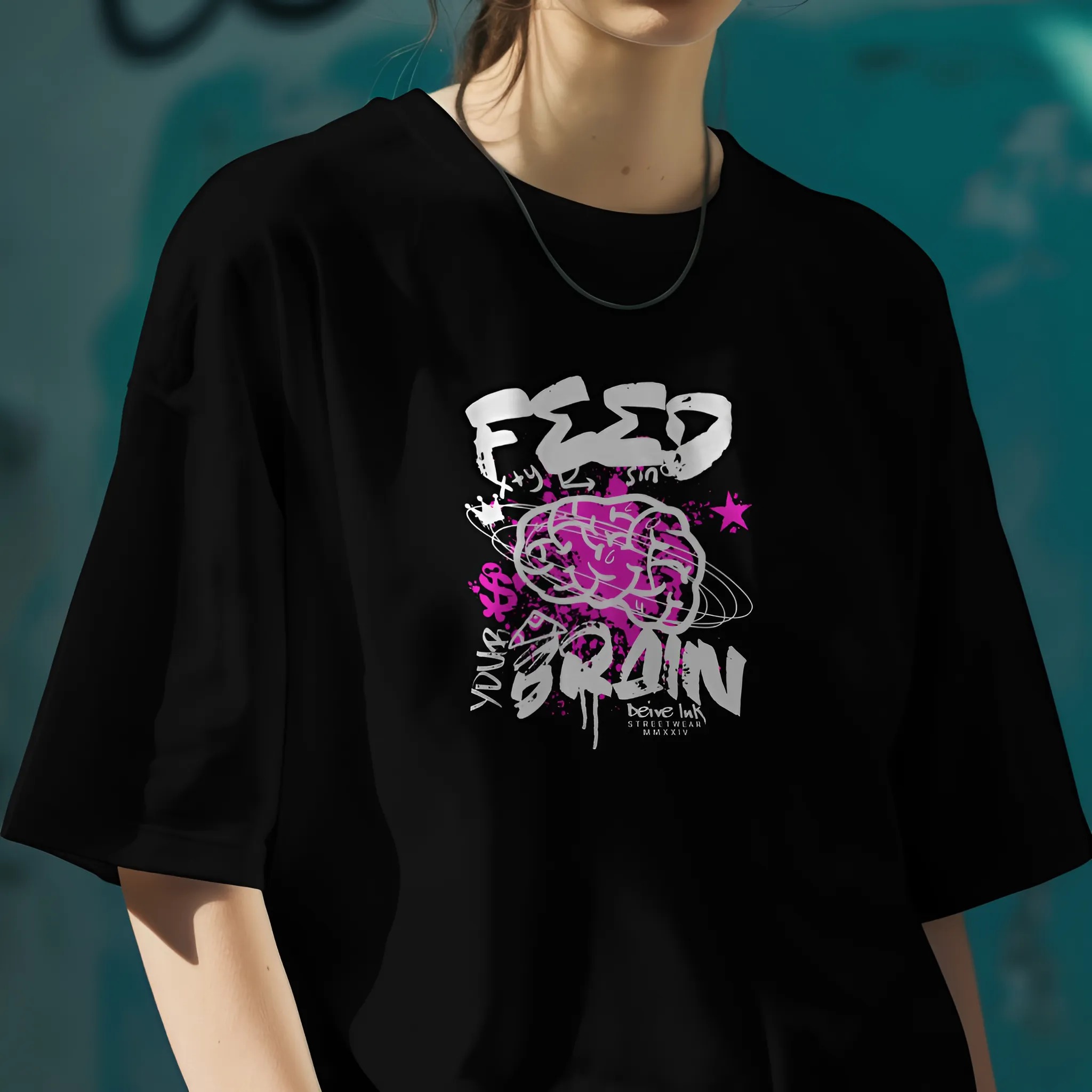 Camiseta Oversized Feed Your Brain - Frente