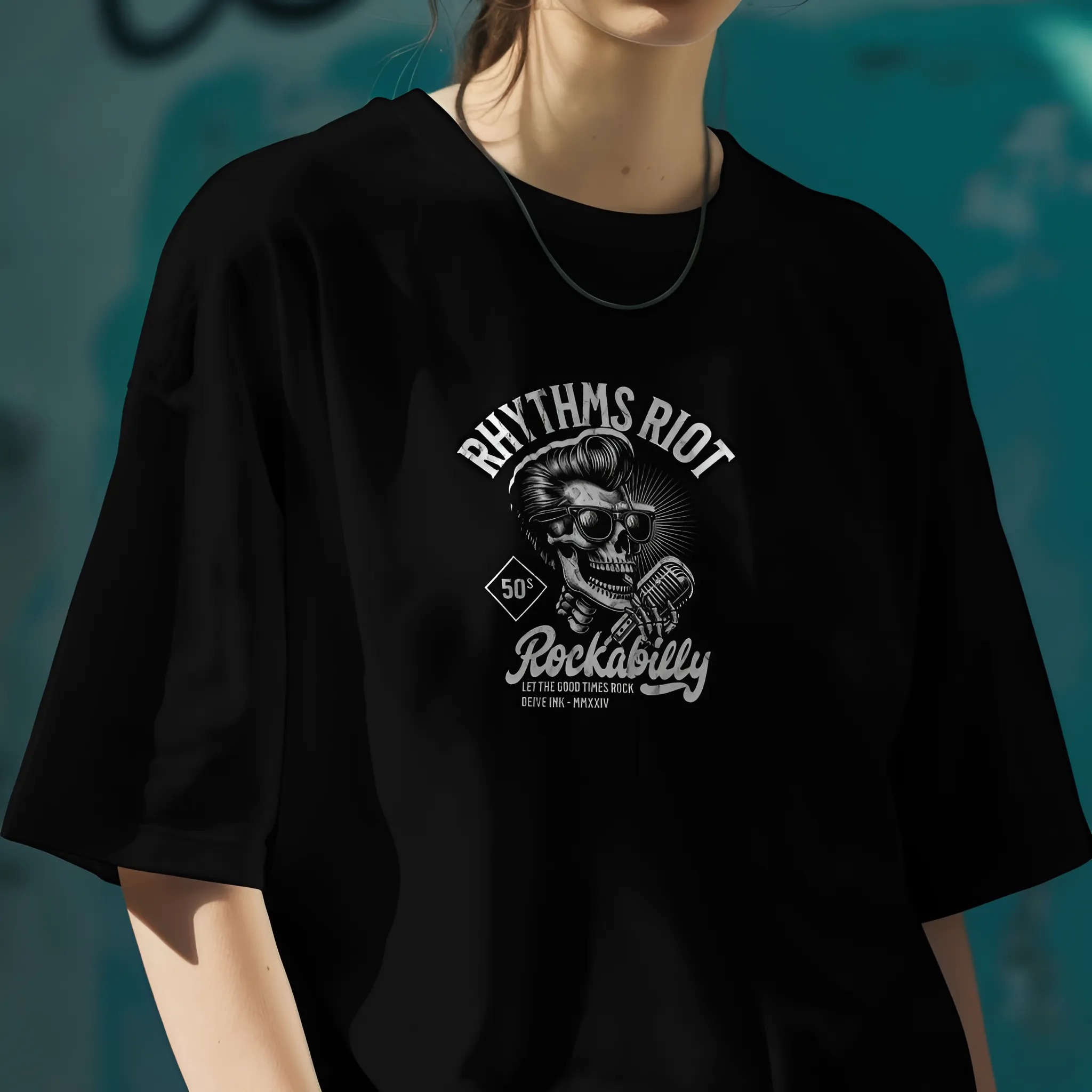 Camiseta Oversized Skull Rockabilly - Frente