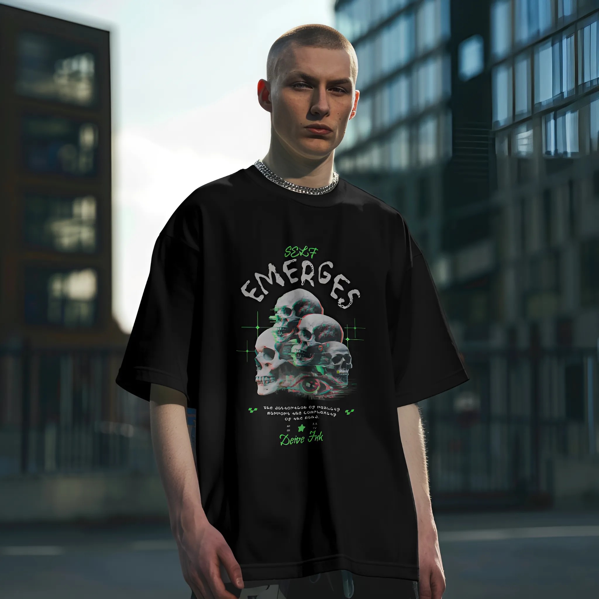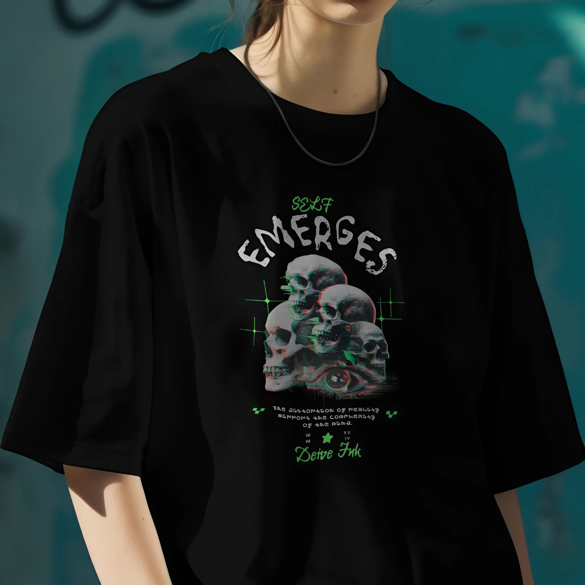 Camiseta Oversized Skull Self Emerges - Frente