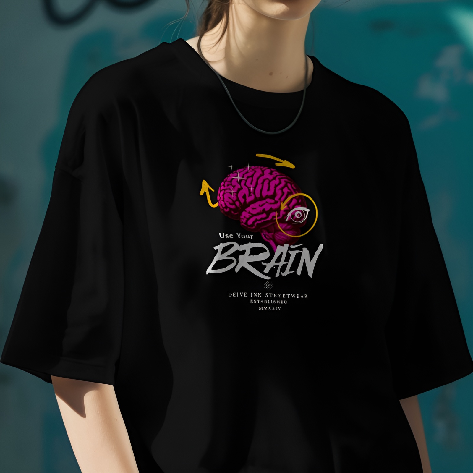 Camiseta Oversized Use Your Brain-Frente